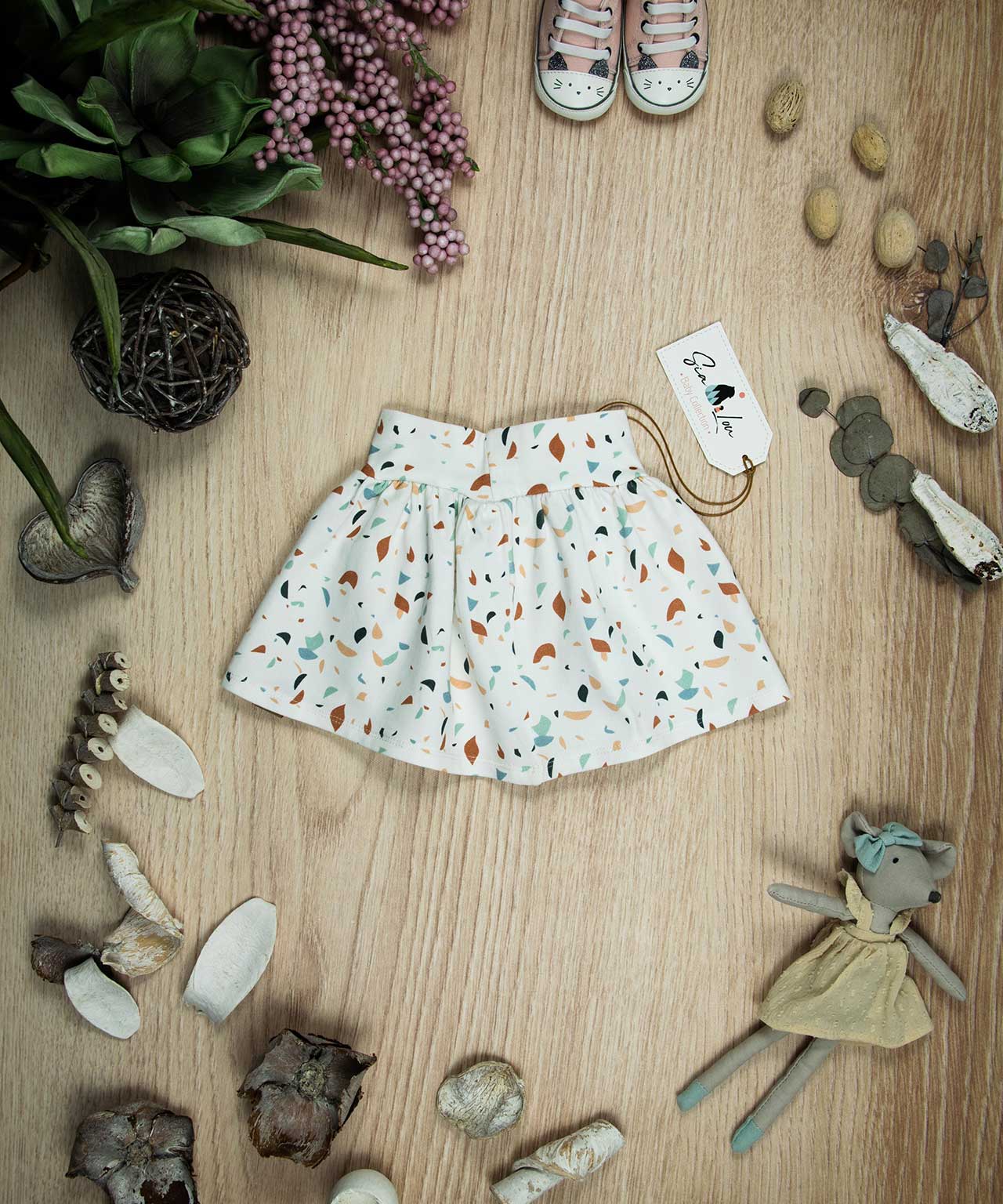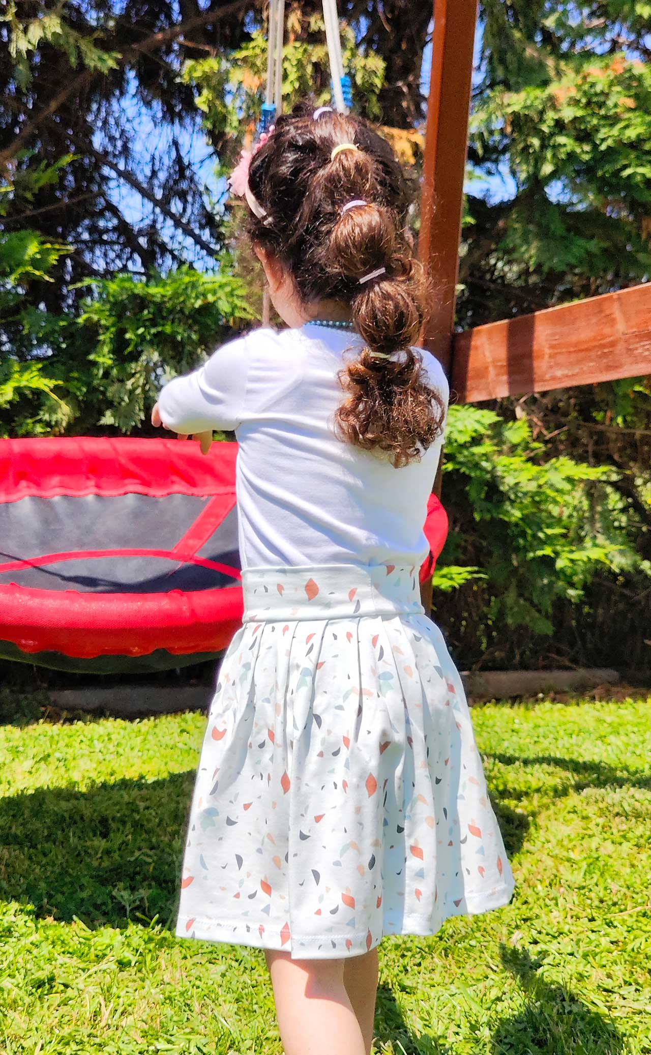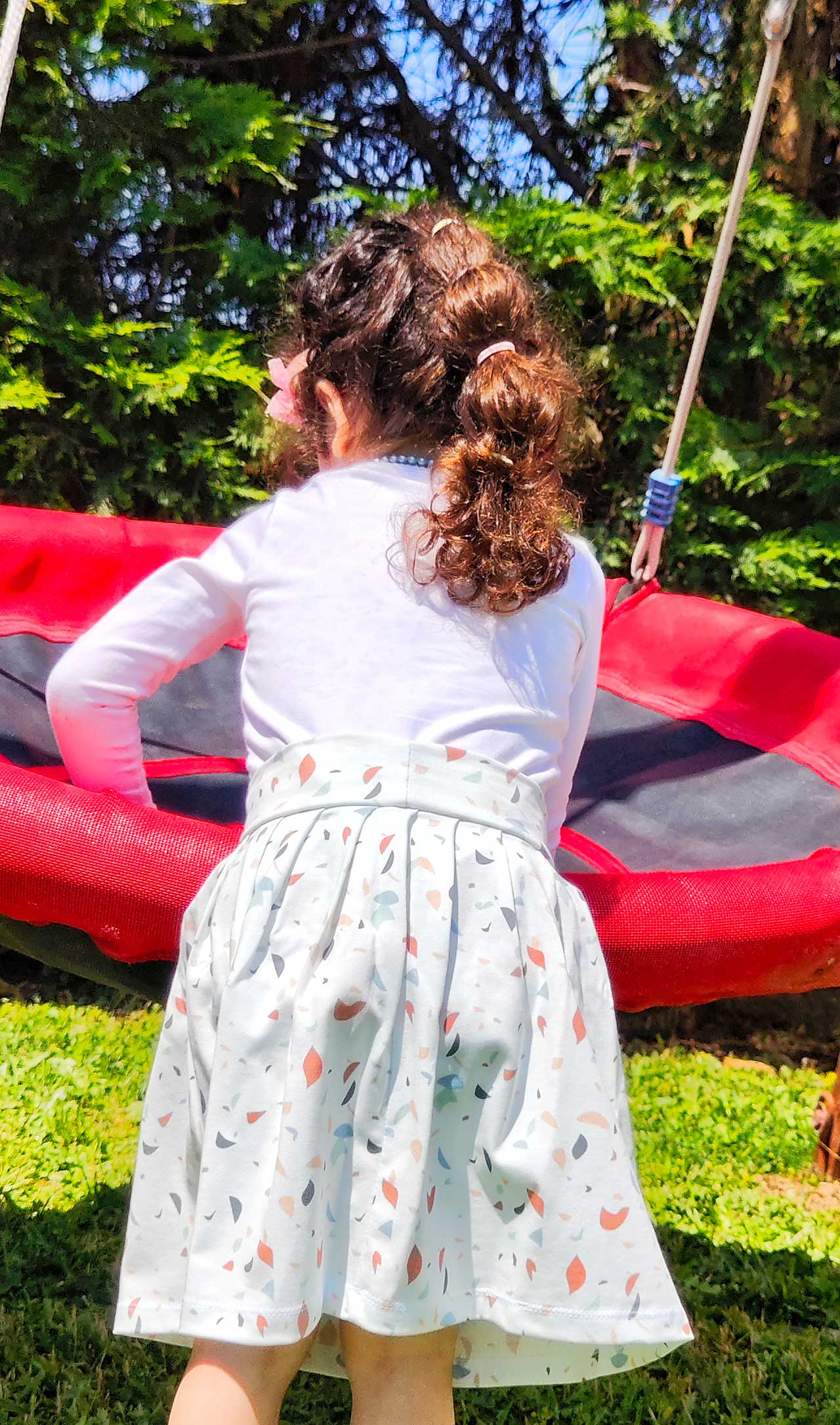 Φούστα με σχέδιο μωσαϊκό για κορίτσι, κατάλληλο τόσο για βόλτα όσο και για μέσα στο σπίτι. Έχει πολύ καλή εφαρμογή και αγκαλιάζει τη μέση του παιδιού. Είναι αέρινη και ανάλαφρη και το στυλ της είναι μίνι. Ανάλογα με το ύψος του παιδιού μπορείτε να επιλέξετε το κατάλληλο νούμερο. Παρακάτω έχουμε τον πίνακα μεγεθών που αναγράφει τις διαστάσεις. Επειδή είναι χειροποίητα και κατόπιν παραγγελίας, η τοποθέτηση του μοτίβου μπορεί να διαφέρει ελαφρώς από αυτό που απεικονίζεται. Δεν υπάρχουν δύο φούστες που να είναι ακριβώς ίδιες , καθιστώντας τη καθεμία μοναδική. Η φωτογραφία μπορεί να παρεκκλίνει ελάχιστα στα χρώματα του τυπώματος. Η φούστα αυτή είναι πολύ άνετη με μαλακό ύφασμα που είναι ιδανικό για το δέρμα του παιδιού. Όλα τα ρούχα μας κατασκευάζονται από, φιλικά προς το παιδί και το περιβάλλον, υφάσματα υψηλής ποιότητας, με τις τελευταίες πιστοποιήσεις σε OECO TEX και GOTS.