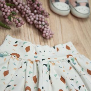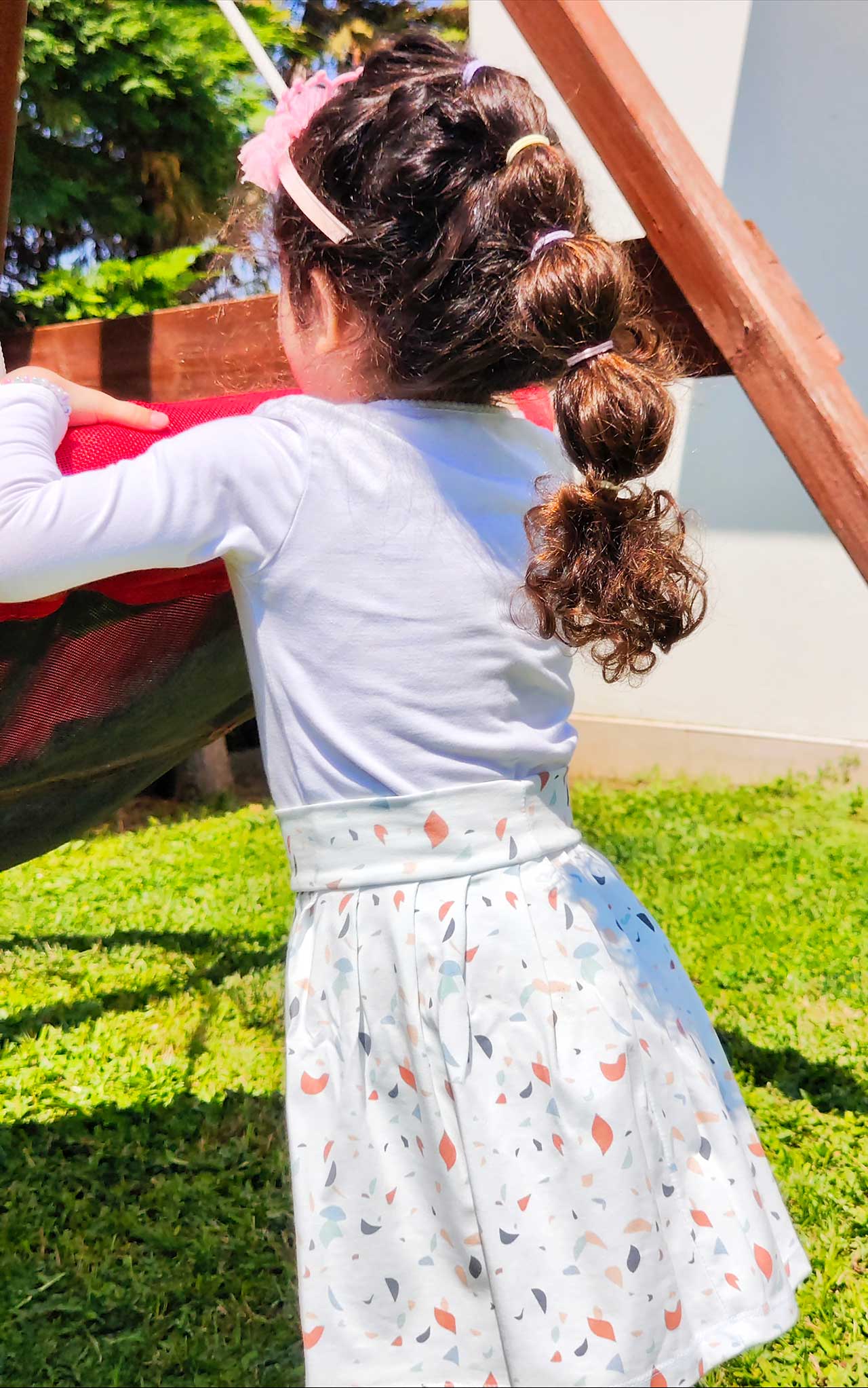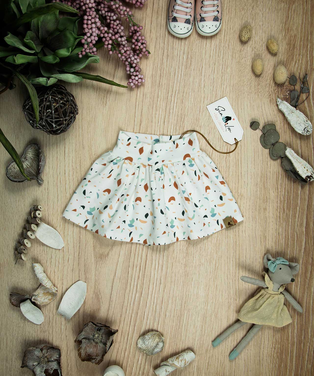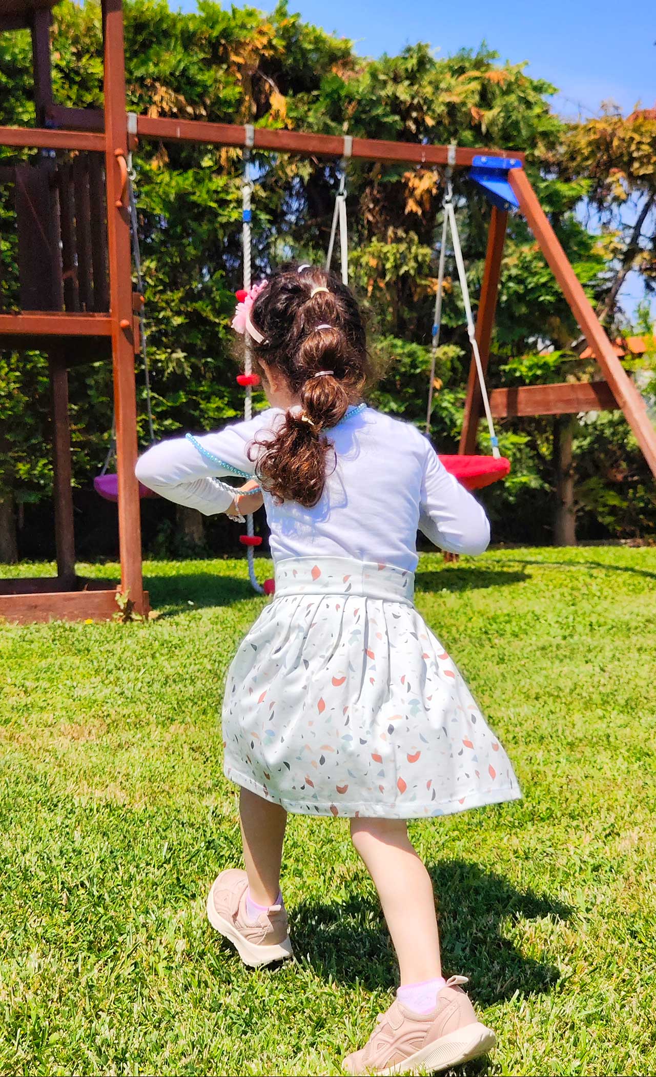 Φούστα με σχέδιο μωσαϊκό για κορίτσι, κατάλληλο τόσο για βόλτα όσο και για μέσα στο σπίτι. Έχει πολύ καλή εφαρμογή και αγκαλιάζει τη μέση του παιδιού. Είναι αέρινη και ανάλαφρη και το στυλ της είναι μίνι. Ανάλογα με το ύψος του παιδιού μπορείτε να επιλέξετε το κατάλληλο νούμερο. Παρακάτω έχουμε τον πίνακα μεγεθών που αναγράφει τις διαστάσεις. Επειδή είναι χειροποίητα και κατόπιν παραγγελίας, η τοποθέτηση του μοτίβου μπορεί να διαφέρει ελαφρώς από αυτό που απεικονίζεται. Δεν υπάρχουν δύο φούστες που να είναι ακριβώς ίδιες , καθιστώντας τη καθεμία μοναδική. Η φωτογραφία μπορεί να παρεκκλίνει ελάχιστα στα χρώματα του τυπώματος. Η φούστα αυτή είναι πολύ άνετη με μαλακό ύφασμα που είναι ιδανικό για το δέρμα του παιδιού. Όλα τα ρούχα μας κατασκευάζονται από, φιλικά προς το παιδί και το περιβάλλον, υφάσματα υψηλής ποιότητας, με τις τελευταίες πιστοποιήσεις σε OECO TEX και GOTS.