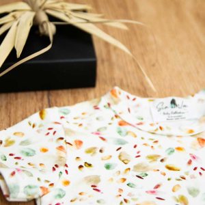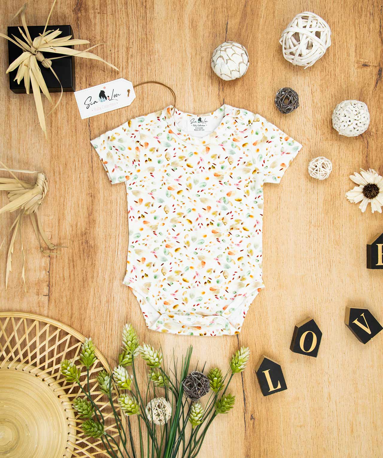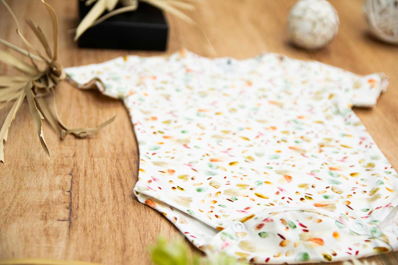 Κορμάκι κοντομάνικο για αγόρι με σχέδιο Abstract Leaves, κατάλληλο τόσο για βόλτα όσο και για μέσα στο σπίτι. Έχει επανότισμα στον ώμο ώστε να μπορεί η μαμά να το φορέσει εύκολα στο παιδί .Επίσης έχει τρουξ στο καβάλο για εύκολο άνοιγμα. Επειδή είναι χειροποίητα και κατόπιν παραγγελίας, η τοποθέτηση του μοτίβου μπορεί να διαφέρει ελαφρώς από αυτό που απεικονίζεται. Δεν υπάρχουν δύο κορμάκια που να είναι ακριβώς ίδια, καθιστώντας το καθένα μοναδικό. Η φωτογραφία μπορεί να παρεκκλίνει ελάχιστα στα χρώματα του τυπώματος. Το κορμάκι αυτό είναι πολύ άνετο με μαλακό ύφασμα που είναι ιδανικό για το δέρμα του παιδιού. Όλα τα ρούχα μας κατασκευάζονται από, φιλικά προς το παιδί και το περιβάλλον, υφάσματα υψηλής ποιότητας, με τις τελευταίες πιστοποιήσεις σε OECO TEX και GOTS.