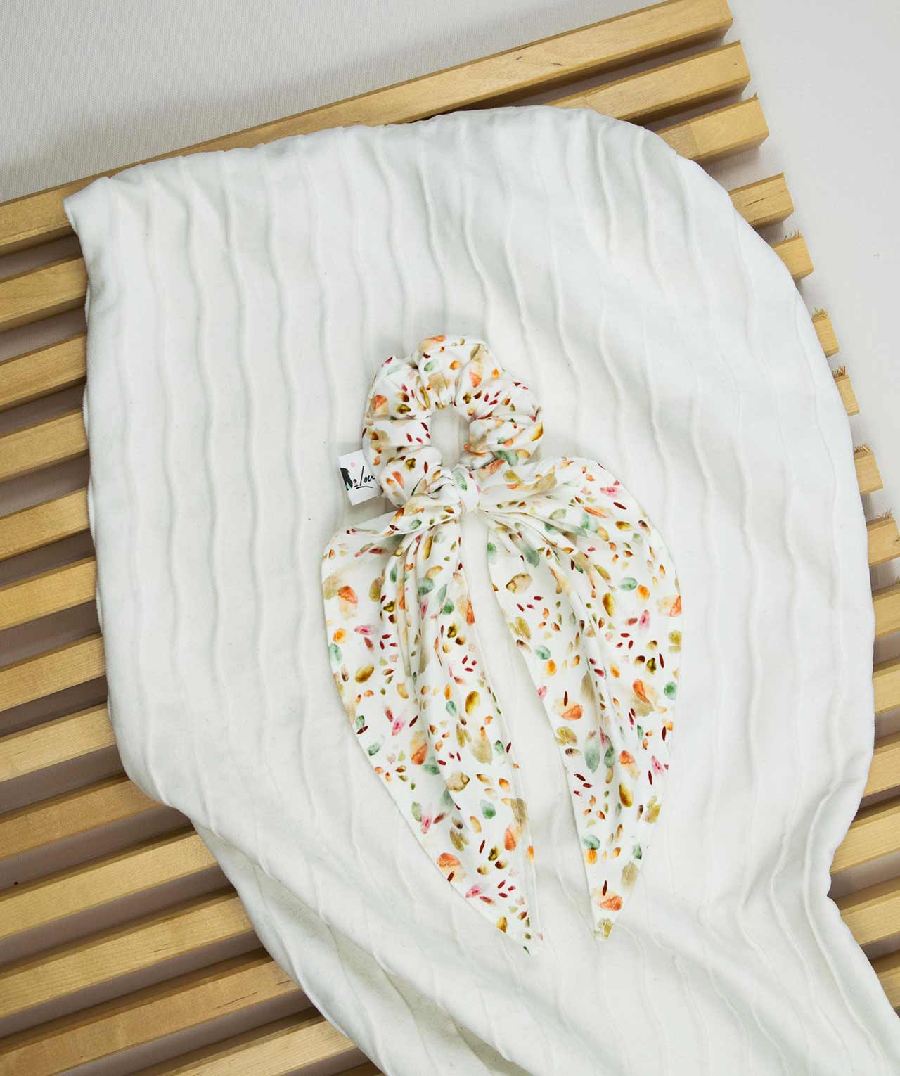 Scrunchie – Λάστιχο με σχέδιο Abstract Leaves , έχει διπλό φιόγκο στο κατάλληλο μέγεθος για να δίνει μια μοναδική γλυκύτητα στο μαλλάκι της μικρή σας .Η κορδέλα έχει πολύ μαλακό ύφασμα που είναι ιδανικό για τα μαλλιά του παιδιού ή της μαμάς. Όλα τα accesories μας κατασκευάζονται από, φιλικά προς το παιδί και το περιβάλλον, υφάσματα υψηλής ποιότητας, με τις τελευταίες πιστοποιήσεις σε OECO TEX και GOTS.