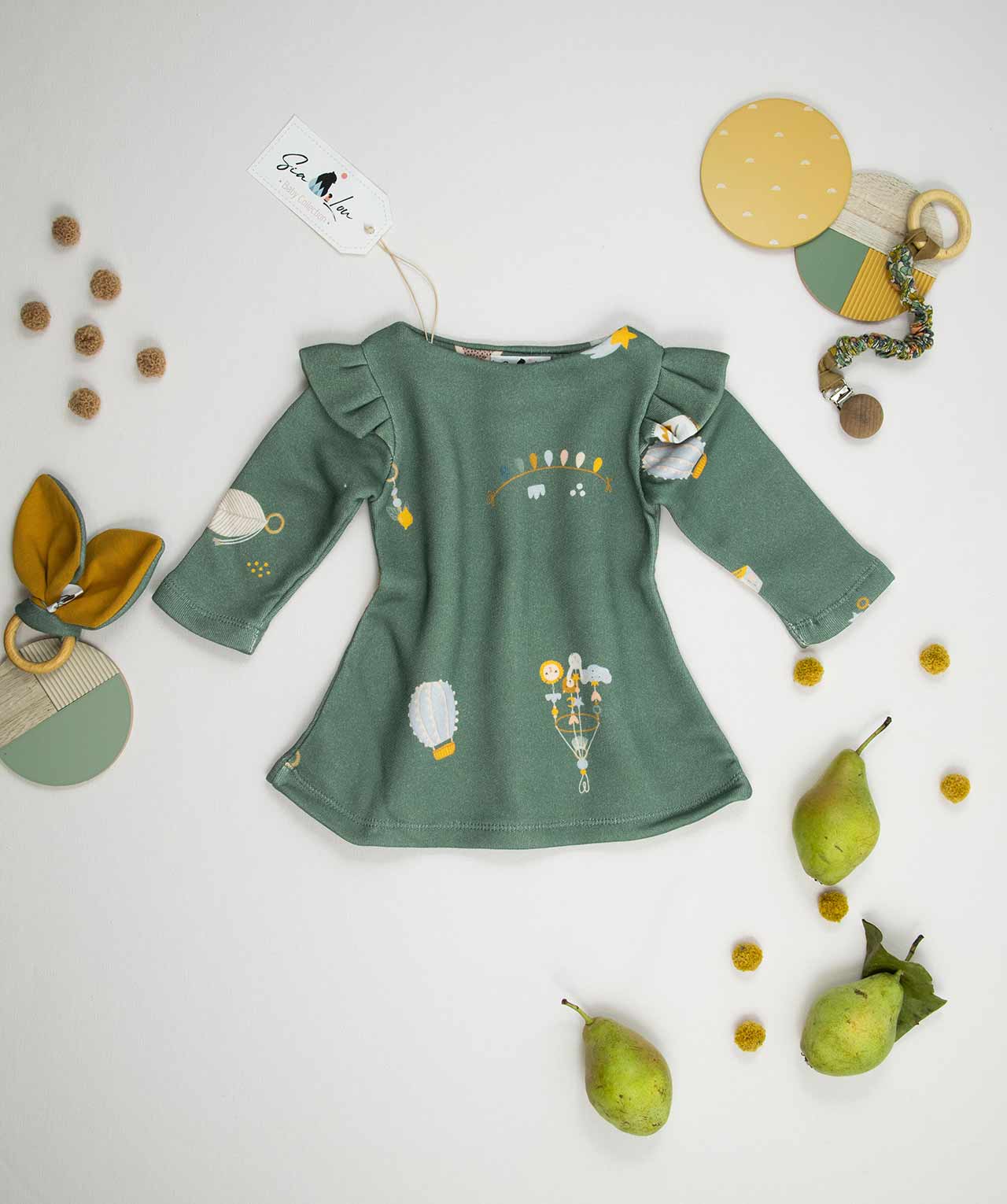Χειροποίητο φόρεμα μεσάτο με βολάν σε σχέδιο Baby Toys για κορίτσι, κατάλληλο τόσο για βόλτα όσο και για μέσα στο σπίτι. Έχει πολύ καλή εφαρμογή και αγκαλιάζει τη μέση του παιδιού. Έχει στρόγγυλη λαιμόκοψη και μακρύ μανίκι. Το στυλ του φορέματος είναι σε γραμμή άλφα. Επειδή είναι χειροποίητα και κατόπιν παραγγελίας, η τοποθέτηση του μοτίβου μπορεί να διαφέρει ελαφρώς από αυτό που απεικονίζεται. Δεν υπάρχουν δύο φορέματα που να είναι ακριβώς ίδια, καθιστώντας το καθένα μοναδικό. Η φωτογραφία μπορεί να παρεκκλίνει ελάχιστα στα χρώματα του τυπώματος. Το φόρεμα αυτό είναι πολύ άνετο με μαλακό ύφασμα που είναι ιδανικό για το δέρμα του παιδιού. Όλα τα ρούχα μας κατασκευάζονται από, φιλικά προς το παιδί και το περιβάλλον, υφάσματα υψηλής ποιότητας, με τις τελευταίες πιστοποιήσεις σε OECO TEX και GOTS.
