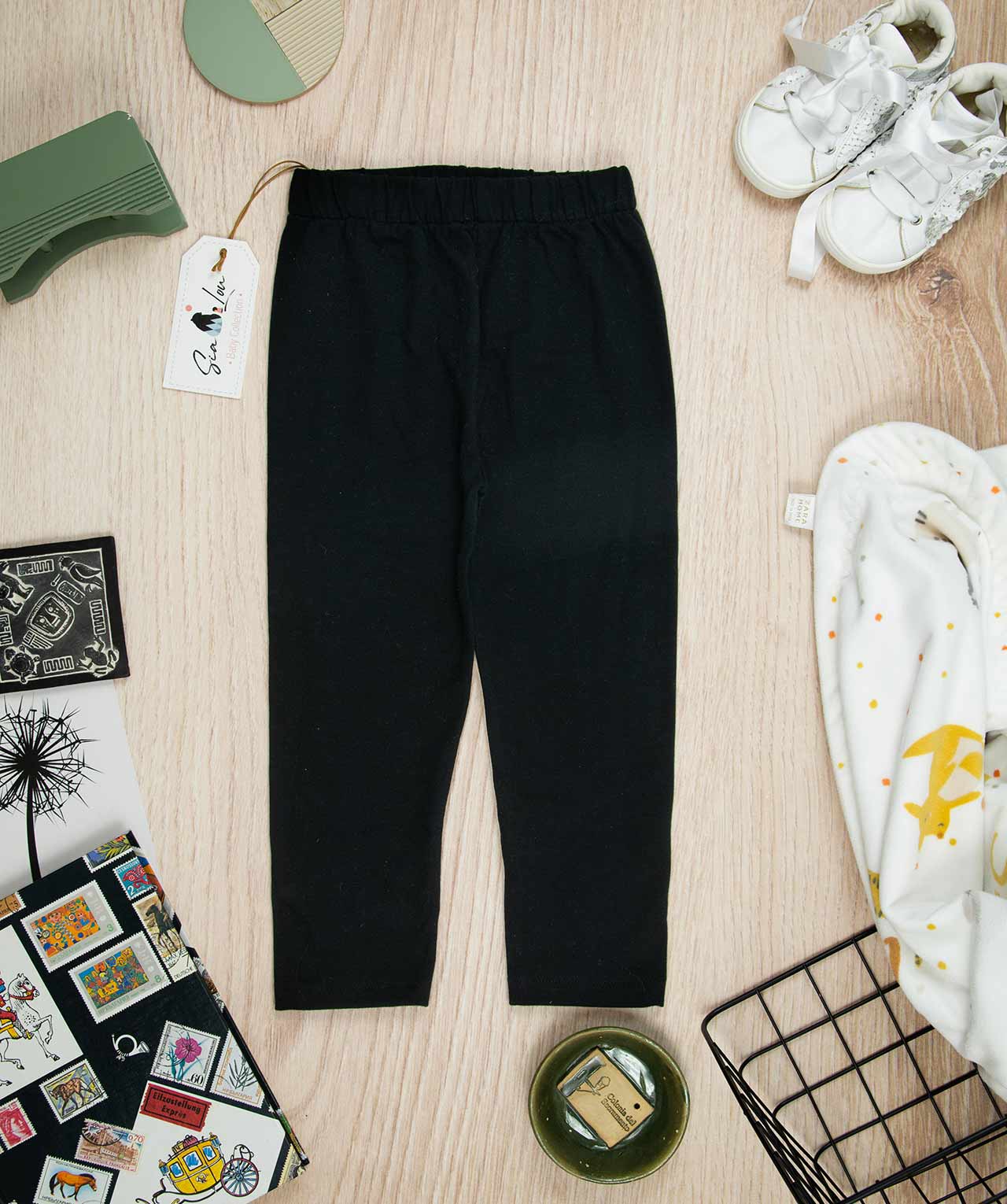 Κολάν για κορίτσι σε απόχρωση μαύρο, κατάλληλο τόσο για βόλτα όσο και για μέσα στο σπίτι. Έχει στενό λάστιχο στη μέση για να εφαρμόζει στη μέση του παιδιού και στενή γραμμή που αγκαλιάζει το πόδι. Το κολάν είναι πολύ άνετο με μαλακό ύφασμα που είναι ιδανικό για το δέρμα του παιδιού. Το κολάν είναι πολύ άνετο με μαλακό ύφασμα που είναι ιδανικό για το δέρμα του παιδιού. Όλα τα ρούχα μας κατασκευάζονται από, φιλικά προς το παιδί και το περιβάλλον, υφάσματα υψηλής ποιότητας, με τις τελευταίες πιστοποιήσεις σε OECO TEX και GOTS.