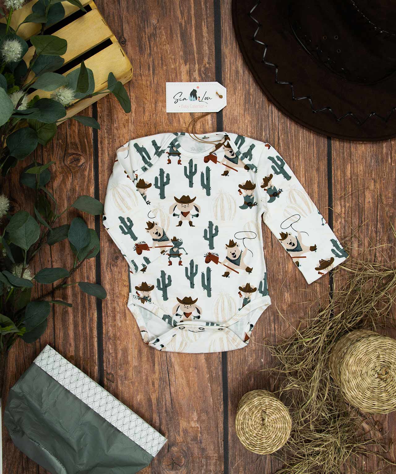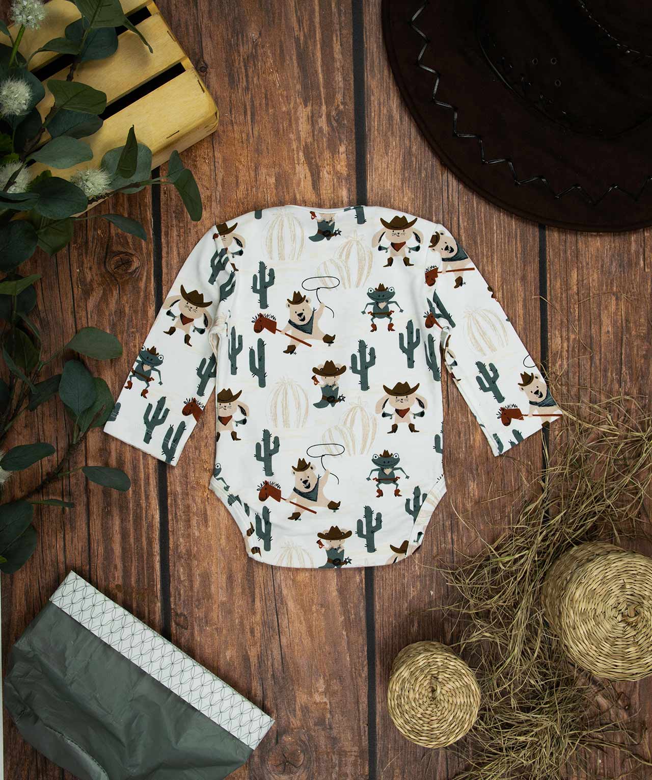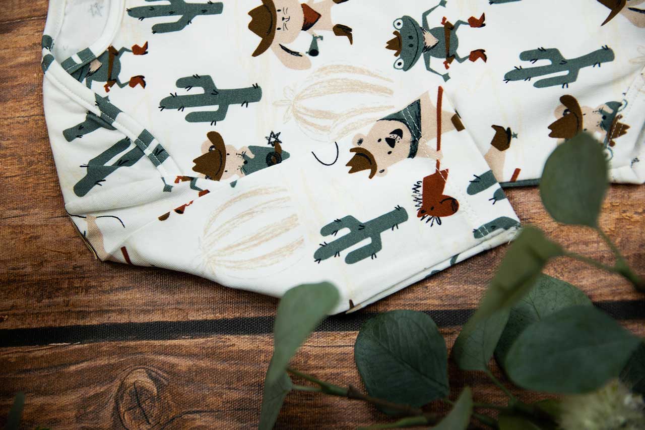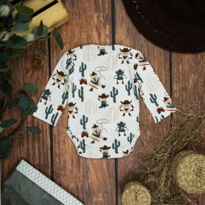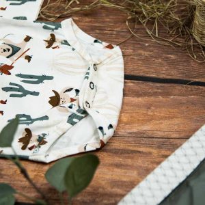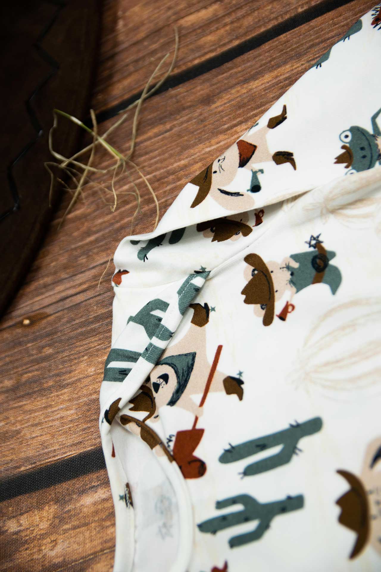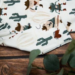 Κορμάκι μακρυμάνικο για αγόρι με σχέδιο καουμπόηδες , κατάλληλο τόσο για βόλτα όσο και για μέσα στο σπίτι. Έχει επανώτισμα στους ώμους ώστε να μπορεί η μαμά να το φορέσει εύκολα στο παιδί .Επίσης έχει τρουξ στο καβάλο για εύκολο άνοιγμα. Επειδή είναι χειροποίητα και κατόπιν παραγγελίας, η τοποθέτηση του μοτίβου μπορεί να διαφέρει ελαφρώς από αυτό που απεικονίζεται. Δεν υπάρχουν δύο κορμάκια που να είναι ακριβώς ίδια, καθιστώντας το καθένα μοναδικό. Η φωτογραφία μπορεί να παρεκκλίνει ελάχιστα στα χρώματα του τυπώματος. Το κορμάκι αυτό είναι πολύ άνετο με μαλακό ύφασμα που είναι ιδανικό για το δέρμα του παιδιού. Όλα τα ρούχα μας κατασκευάζονται από, φιλικά προς το παιδί και το περιβάλλον, υφάσματα υψηλής ποιότητας, με τις τελευταίες πιστοποιήσεις σε OECO TEX και GOTS.