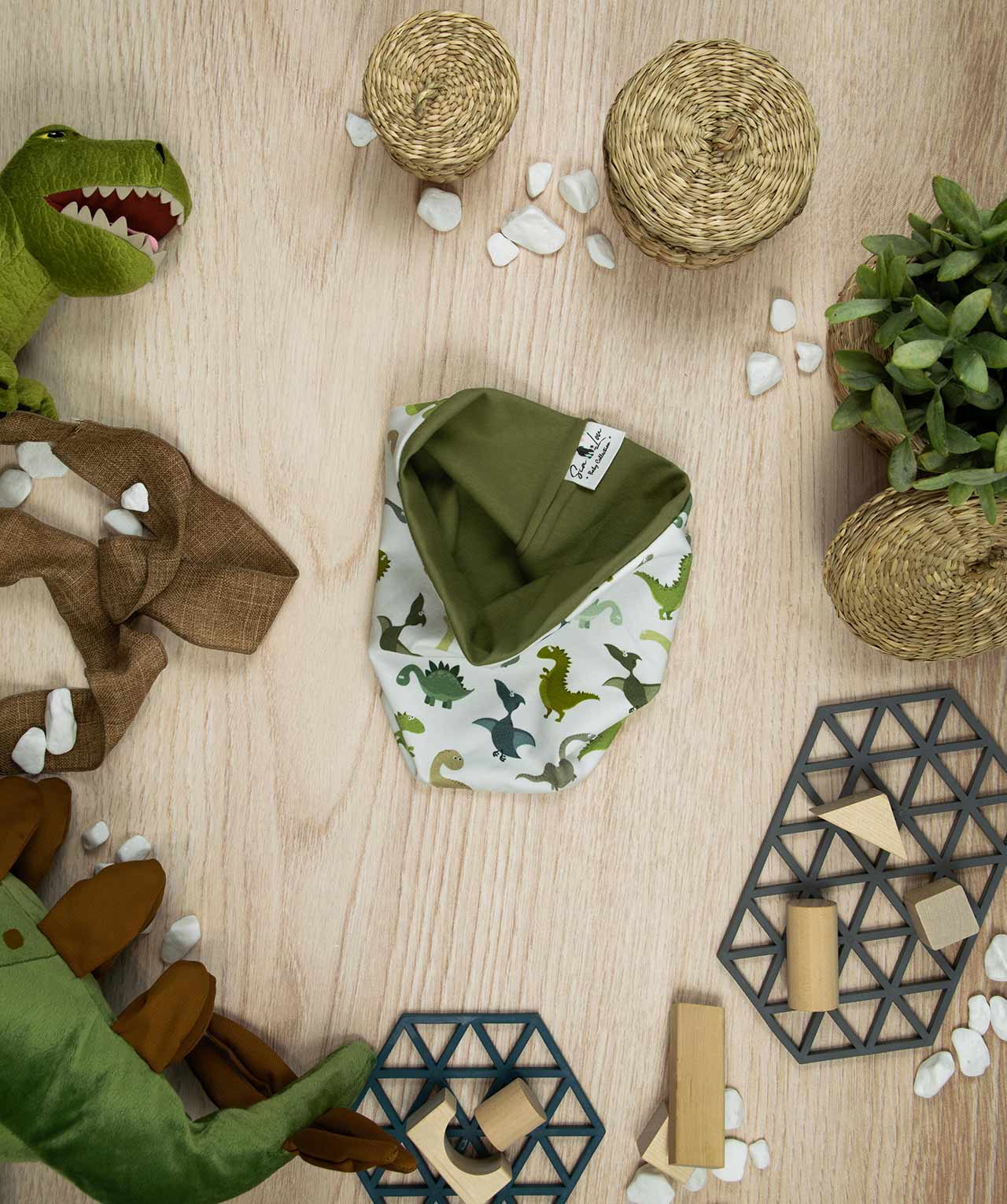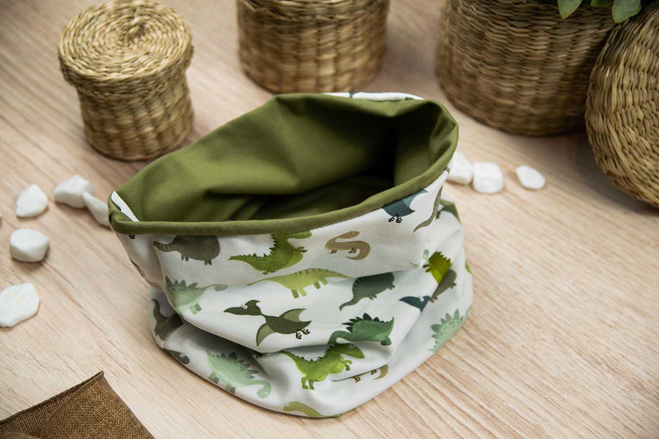 Κασκόλ σε χρώμα δεινόσαυροι και olive green , ιδανικό για τις κρύες μέρες του χειμώνα. Είναι Doublefast από τη μια δεινόσαυροι και από την άλλη olive green . Έχει διπλή επένδυση και είναι πολύ ζεστό για να κρατάει το λαιμό του μωρού σε καλή θερμοκρασία . Όλα τα accesories μας κατασκευάζονται από, φιλικά προς το παιδί και το περιβάλλον, υφάσματα υψηλής ποιότητας, με τις τελευταίες πιστοποιήσεις σε OECO TEX και GOTS.