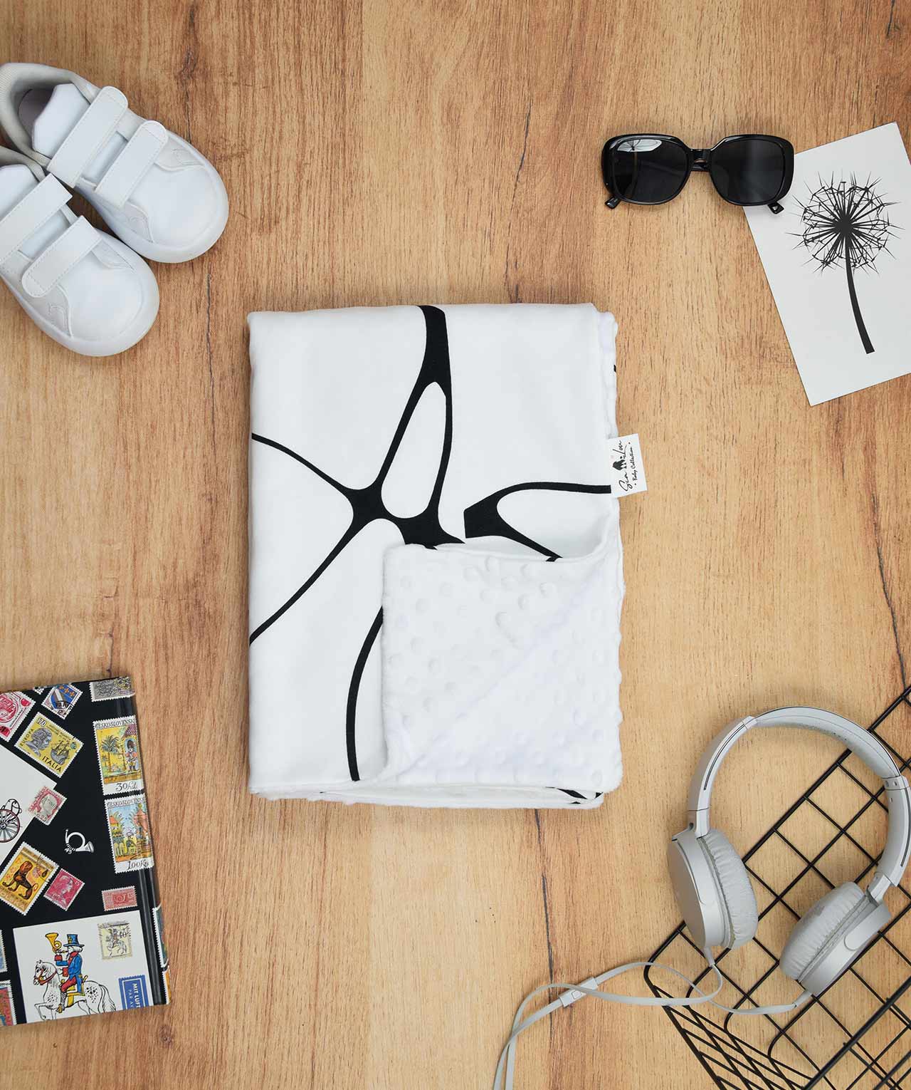 Διπλής όψης ,100% organic cotton από τη μία όψη και minky αντιαλλεργικό με βελούδινη υφή από την άλλη.
