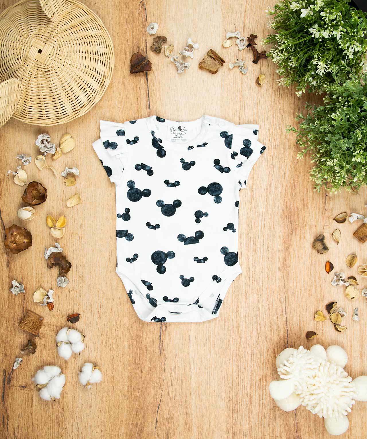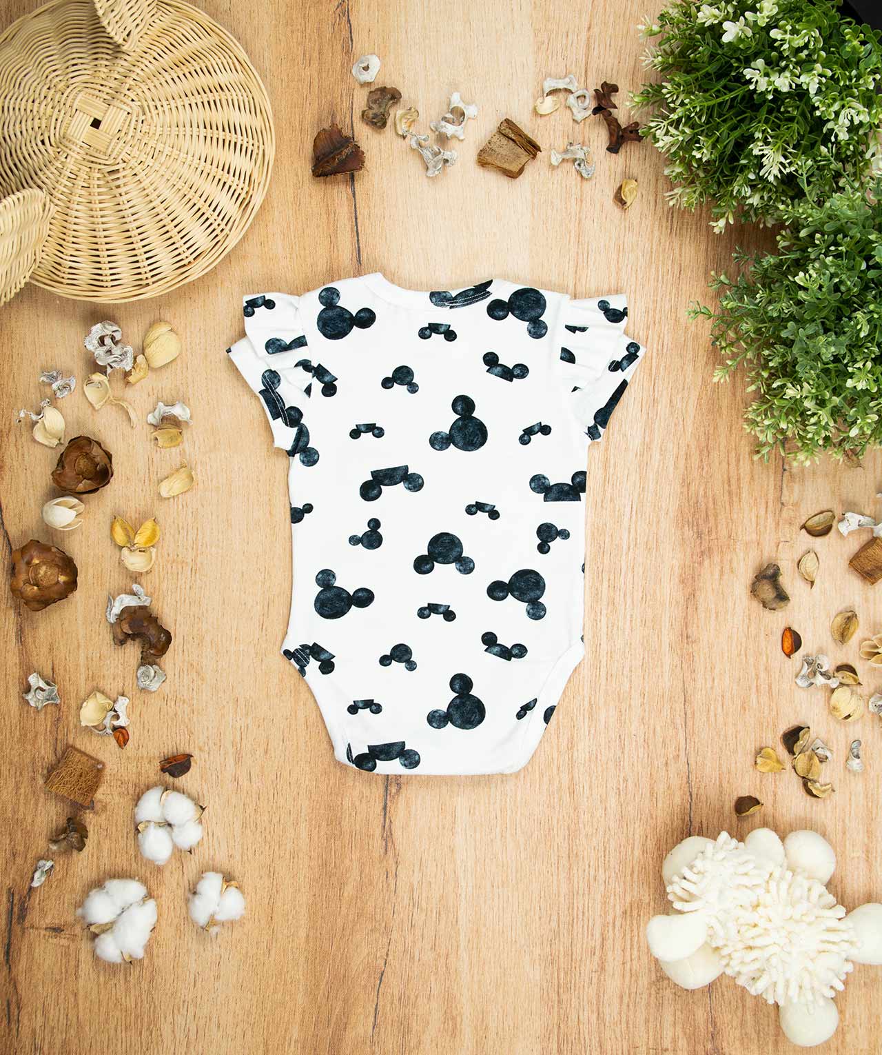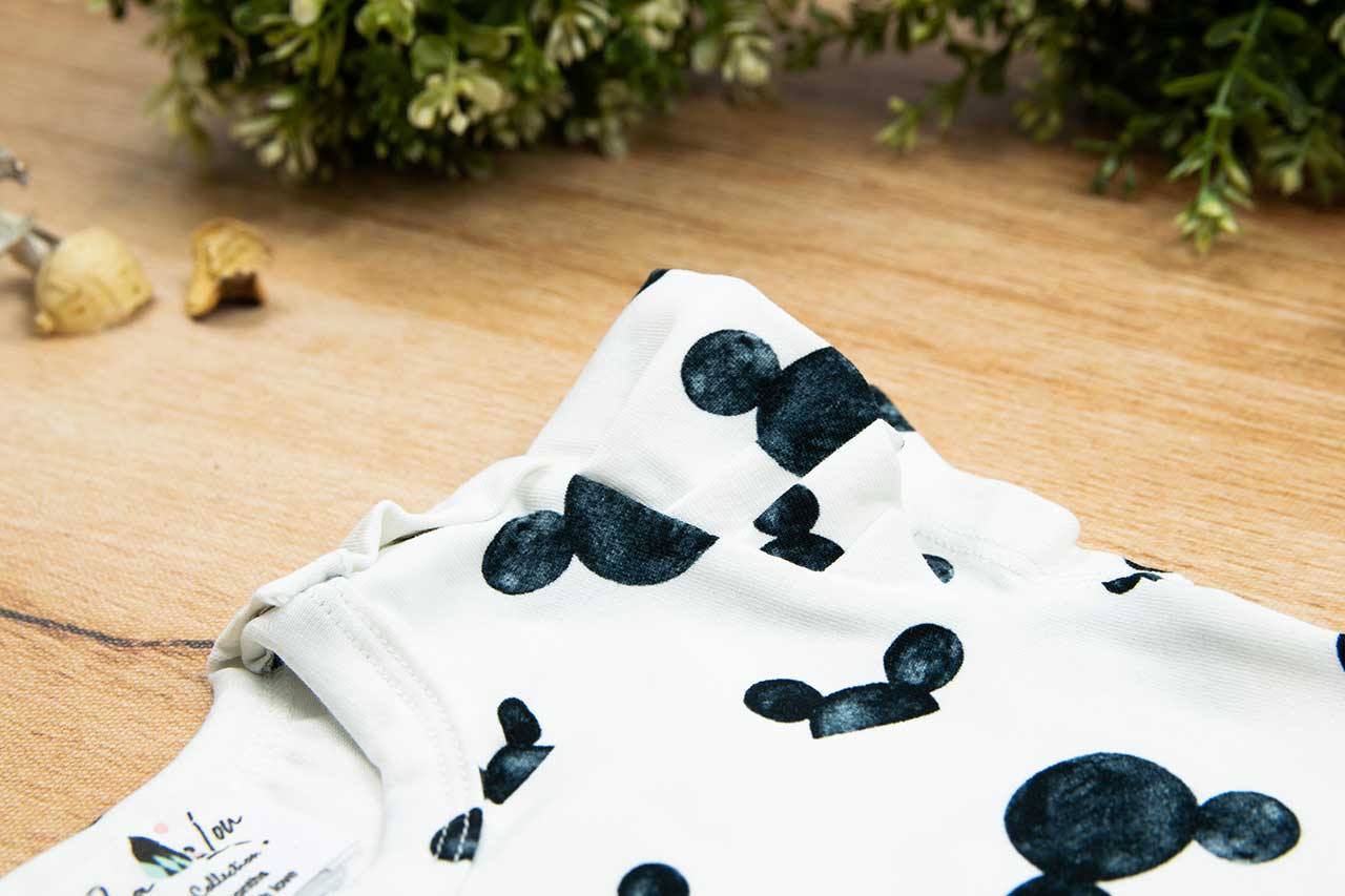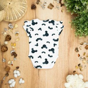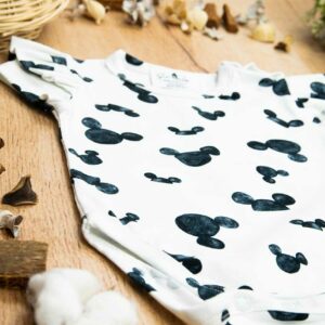 Κορμάκι κοντομάνικο με σχέδιο Mickey, κατάλληλο τόσο για βόλτα όσο και για μέσα στο σπίτι. Έχει επανότισμα στον ώμο ώστε να μπορεί η μαμά να το φορέσει εύκολα στο παιδί .Επίσης έχει τρουξ στο καβάλο για εύκολο άνοιγμα. Επειδή είναι χειροποίητα και κατόπιν παραγγελίας, η τοποθέτηση του μοτίβου μπορεί να διαφέρει ελαφρώς από αυτό που απεικονίζεται. Δεν υπάρχουν δύο κορμάκια που να είναι ακριβώς ίδια, καθιστώντας το καθένα μοναδικό. Η φωτογραφία μπορεί να παρεκκλίνει ελάχιστα στα χρώματα του τυπώματος. Το κορμάκι αυτό είναι πολύ άνετο με μαλακό ύφασμα που είναι ιδανικό για το δέρμα του παιδιού. Όλα τα ρούχα μας κατασκευάζονται από, φιλικά προς το παιδί και το περιβάλλον, υφάσματα υψηλής ποιότητας, με τις τελευταίες πιστοποιήσεις σε OECO TEX και GOTS.