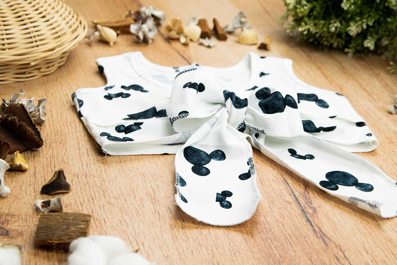 Μπλούζα crop top για κορίτσι Mickey . Το μπλουζάκι είναι αμάνικο , έχει χαμόγελο λαιμόκοψη είναι εφαρμοστό στο στήθος και έχει ένα δέσιμο με φιόγκο μπροστά. Ο συνδυασμός αυτός δίνει ένα μοναδικό στιλ στα κορίτσια και πολύ μοντέρνο. Το μπλουζάκι είναι πολύ άνετο με μαλακό ύφασμα που είναι ιδανικό για το δέρμα του παιδιού. Όλα τα ρούχα μας κατασκευάζονται από, φιλικά προς το παιδί και το περιβάλλον, υφάσματα υψηλής ποιότητας, με τις τελευταίες πιστοποιήσεις σε OECO TEX και GOTS.