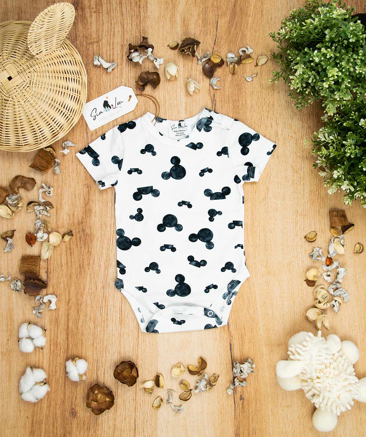 Κορμάκι κοντομάνικο για αγόρι με σχέδιο mickey white, κατάλληλο τόσο για βόλτα όσο και για μέσα στο σπίτι. Έχει επανότισμα στον ώμο ώστε να μπορεί η μαμά να το φορέσει εύκολα στο παιδί .Επίσης έχει τρουξ στο καβάλο για εύκολο άνοιγμα. Επειδή είναι χειροποίητα και κατόπιν παραγγελίας, η τοποθέτηση του μοτίβου μπορεί να διαφέρει ελαφρώς από αυτό που απεικονίζεται. Δεν υπάρχουν δύο κορμάκια που να είναι ακριβώς ίδια, καθιστώντας το καθένα μοναδικό. Η φωτογραφία μπορεί να παρεκκλίνει ελάχιστα στα χρώματα του τυπώματος. Το κορμάκι αυτό είναι πολύ άνετο με μαλακό ύφασμα που είναι ιδανικό για το δέρμα του παιδιού. Όλα τα ρούχα μας κατασκευάζονται από, φιλικά προς το παιδί και το περιβάλλον, υφάσματα υψηλής ποιότητας, με τις τελευταίες πιστοποιήσεις σε OECO TEX και GOTS.