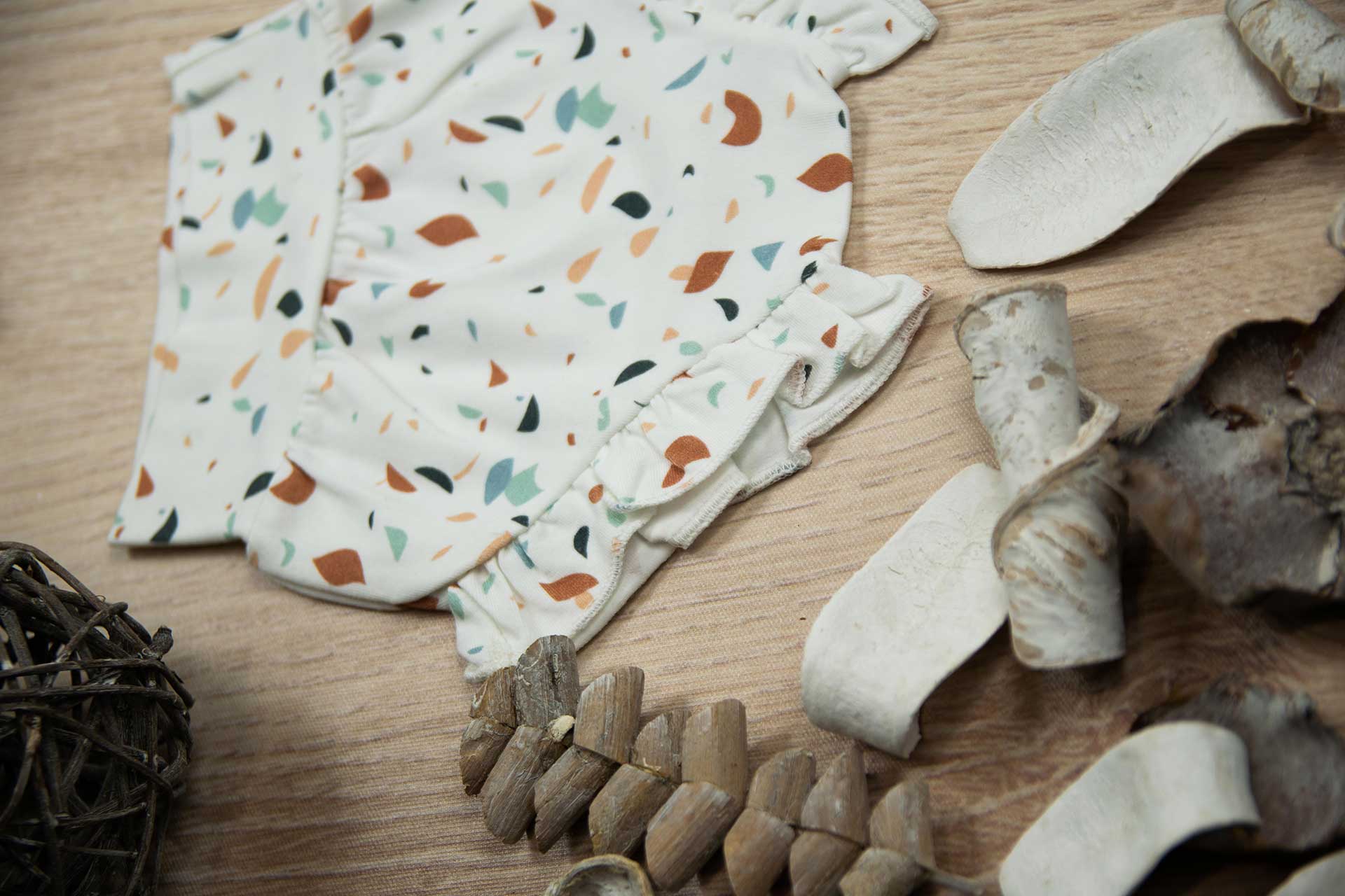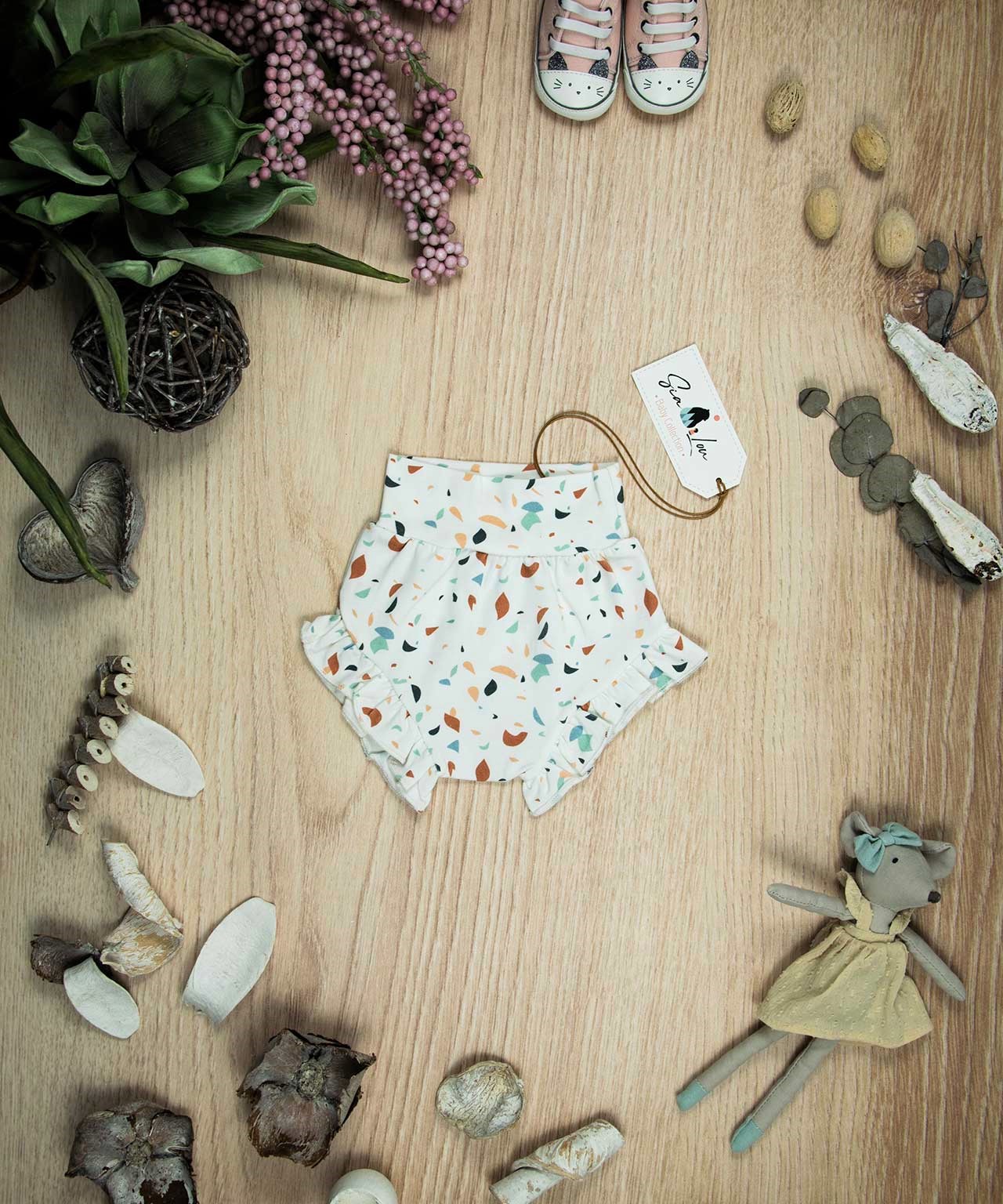 Βρακάκι για κορίτσι με σχέδιο μωσαϊκό, κατάλληλο τόσο για βόλτα όσο και για μέσα στο σπίτι. Εφαρμόζει κατάλληλα στη μέση του παιδιού και έχει βολάν στο τελείωμα στα ποδαράκια .Επειδή είναι χειροποίητα και κατόπιν παραγγελίας, η τοποθέτηση του μοτίβου μπορεί να διαφέρει ελαφρώς από αυτό που απεικονίζεται. Δεν υπάρχουν δύο βρακάκια που να είναι ακριβώς ίδια, καθιστώντας το καθένα μοναδικό. Η φωτογραφία μπορεί να παρεκκλίνει ελάχιστα στα χρώματα του τυπώματος. Το βρακάκι αυτό είναι πολύ άνετο με μαλακό ύφασμα που είναι ιδανικό για το δέρμα του παιδιού. Όλα τα ρούχα μας κατασκευάζονται από, φιλικά προς το παιδί και το περιβάλλον, υφάσματα υψηλής ποιότητας, με τις τελευταίες πιστοποιήσεις σε OECO TEX και GOTS.