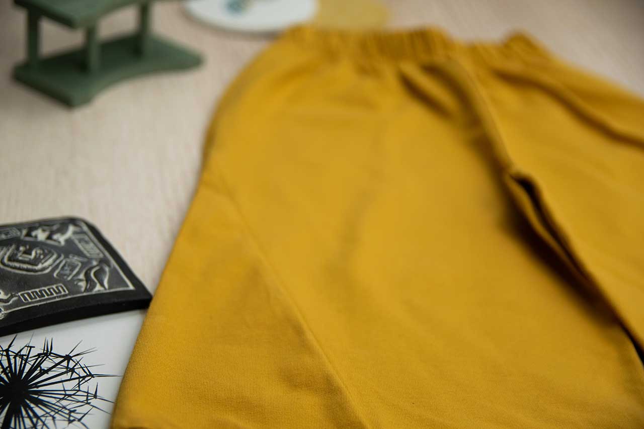 Παντελόνα με μπάσκα σε χρώμα μουσταρδί, κατάλληλο τόσο για βόλτα όσο και για μέσα στο σπίτι. Ο σχεδιασμός της παντελόνας είναι σε άνετη γραμμή με τρίγωνα κομμάτια στο πλάι και μπάσκα στο τελείωμα. Είναι πολύ άνετη με μαλακό ύφασμα που είναι ιδανικό για το δέρμα του παιδιού. Όλα τα ρούχα μας κατασκευάζονται από, φιλικά προς το παιδί και το περιβάλλον, υφάσματα υψηλής ποιότητας, με τις τελευταίες πιστοποιήσεις σε OECO TEX και GOTS.