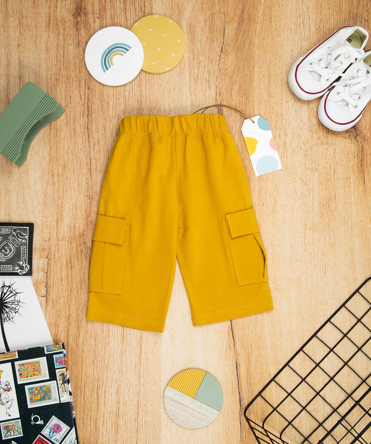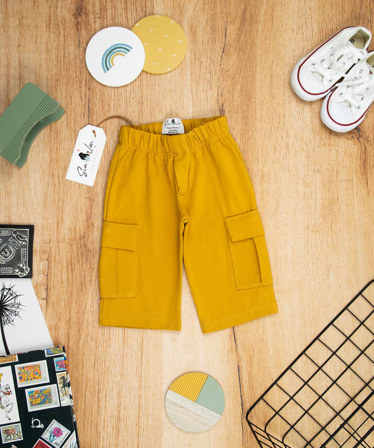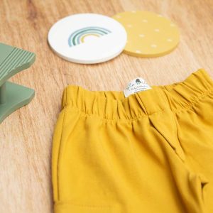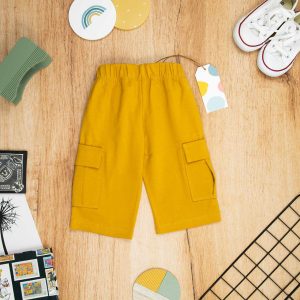 Παντελόνι 3/4 για αγόρι σε απόχρωση κίτρινο της μουστάρδας, ιδανικό για βόλτα και μέσα στο σπίτι. Είναι πολύ άνετο με ένα ιδιαίτερο σχέδιο με τσέπες στα πλαϊνά .Έχει λάστιχο για να εφαρμόζει κατάλληλα στη μέση του παιδιού και στο τελείωμα από το μπατζάκι . Το παντελόνι αυτό έχει μαλακό ύφασμα που είναι ιδανικό για το δέρμα του παιδιού. Όλα τα ρούχα μας κατασκευάζονται από, φιλικά προς το παιδί και το περιβάλλον, υφάσματα υψηλής ποσότητας, με τις τελευταίες πιστοποιήσεις σε OECO TEX και GOTS.