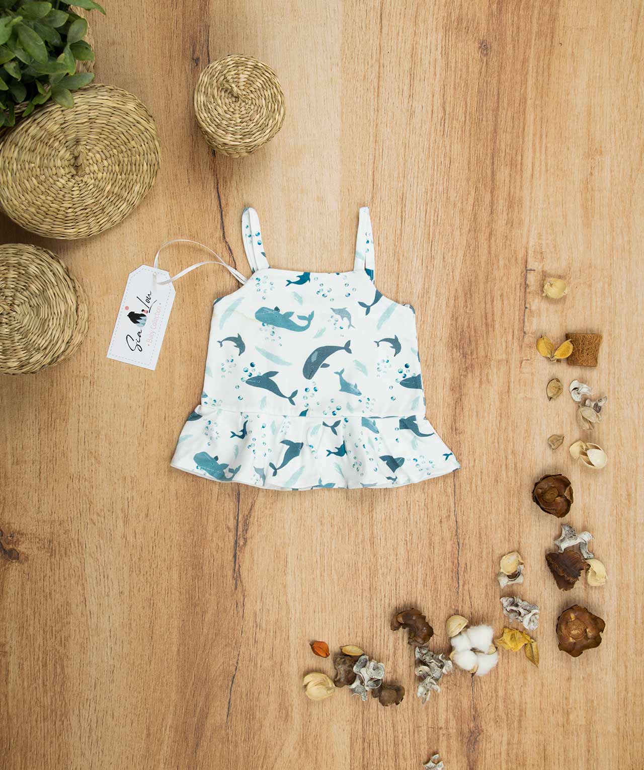 Μπλούζα crop top για κορίτσι σε σχέδιο Ocean. Ένα άνετο τιραντάκι για τα πιο μοδάτα καλοκαιρινά ντυσίματα. Το μπλουζάκι είναι πολύ άνετο με μαλακό ύφασμα που είναι ιδανικό για το δέρμα του παιδιού. Όλα τα ρούχα μας κατασκευάζονται από, φιλικά προς το παιδί και το περιβάλλον, υφάσματα υψηλής ποιότητας, με τις τελευταίες πιστοποιήσεις σε OECO TEX και GOTS.