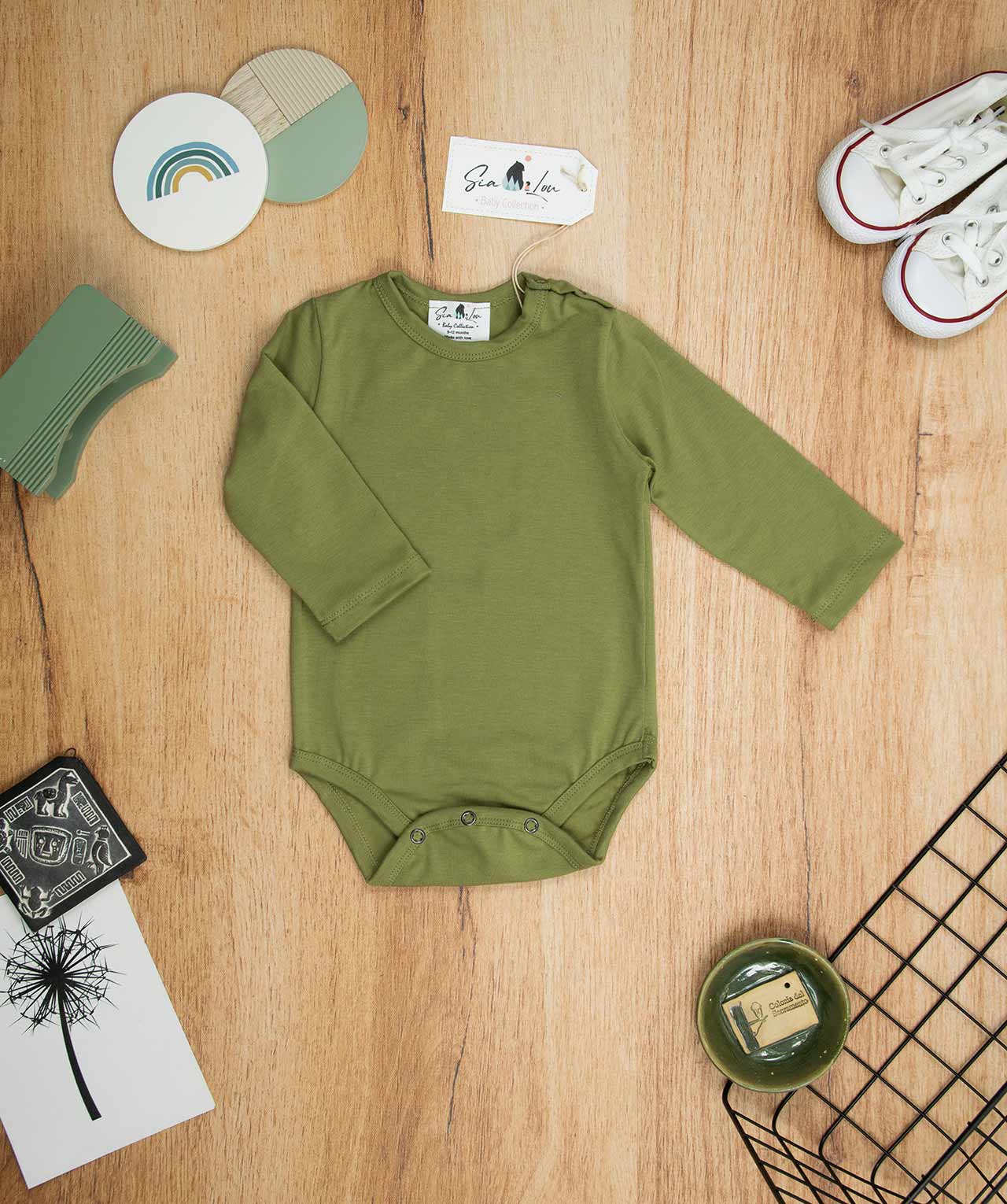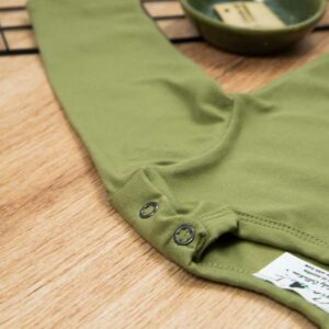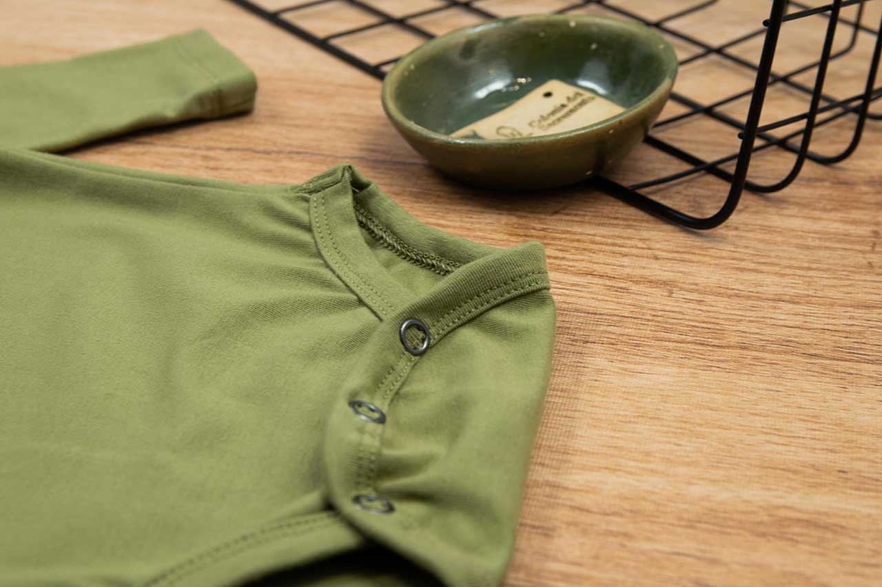 Κορμάκι μακρυμάνικο σε χρώμα λαδί, κατάλληλο τόσο για βόλτα όσο και για μέσα στο σπίτι. Έχει επανότισμα στον ώμο ώστε να μπορεί η μαμά να το φορέσει εύκολα στο παιδί .Επίσης έχει τρουξ στο καβάλο για εύκολο άνοιγμα. Το κορμάκι αυτό είναι πολύ άνετο με μαλακό ύφασμα που είναι ιδανικό για το δέρμα του παιδιού. Όλα τα ρούχα μας κατασκευάζονται από, φιλικά προς το παιδί και το περιβάλλον, υφάσματα υψηλής ποιότητας, με τις τελευταίες πιστοποιήσεις σε OECO TEX και GOTS.