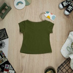 Μπλούζα για κορίτσι σε λαδί χρώμα. Το μπλουζάκι είναι κοντομάνικο μεσάτο με ανοιχτή λαιμόκοψη . Είναι πολύ άνετο με μαλακό ύφασμα που είναι ιδανικό για το δέρμα του παιδιού. Όλα τα ρούχα μας κατασκευάζονται από, φιλικά προς το παιδί και το περιβάλλον, υφάσματα υψηλής ποιότητας, με τις τελευταίες πιστοποιήσεις σε OECO TEX και GOTS.