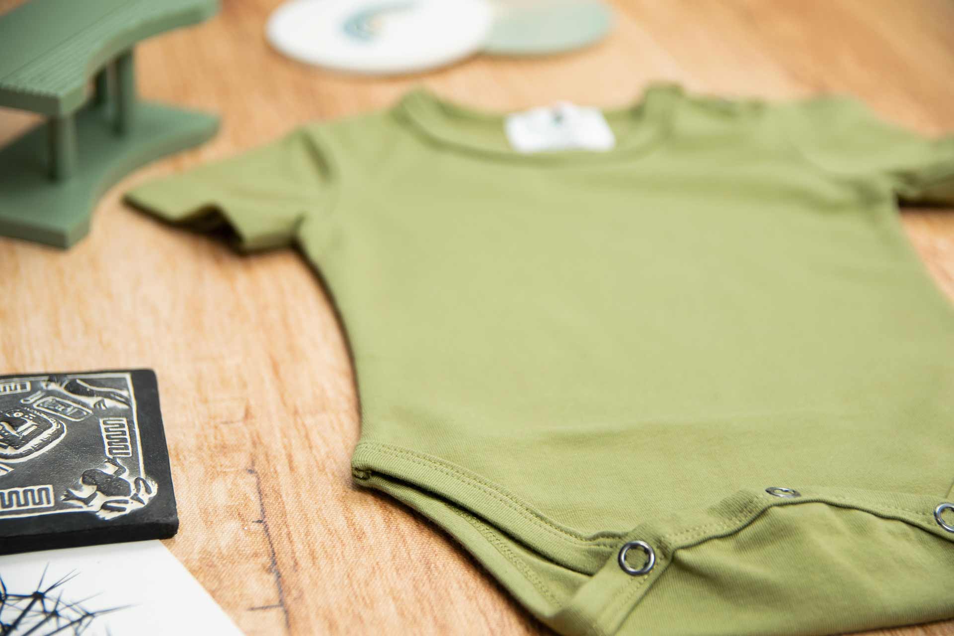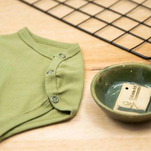 Κορμάκι κοντομάνικο σε χρώμα πράσινο λαδί, κατάλληλο τόσο για βόλτα όσο και για μέσα στο σπίτι. Έχει επανότισμα στον ώμο ώστε να μπορεί η μαμά να το φορέσει εύκολα στο παιδί .Επίσης έχει τρουξ στο καβάλο για εύκολο άνοιγμα. Επειδή είναι χειροποίητα και κατόπιν παραγγελίας, η τοποθέτηση του μοτίβου μπορεί να διαφέρει ελαφρώς από αυτό που απεικονίζεται. Δεν υπάρχουν δύο κορμάκια που να είναι ακριβώς ίδια, καθιστώντας το καθένα μοναδικό. Η φωτογραφία μπορεί να παρεκκλίνει ελάχιστα στα χρώματα του τυπώματος. Το κορμάκι αυτό είναι πολύ άνετο με μαλακό ύφασμα που είναι ιδανικό για το δέρμα του παιδιού. Όλα τα ρούχα μας κατασκευάζονται από, φιλικά προς το παιδί και το περιβάλλον, υφάσματα υψηλής ποιότητας, με τις τελευταίες πιστοποιήσεις σε OECO TEX και GOTS.