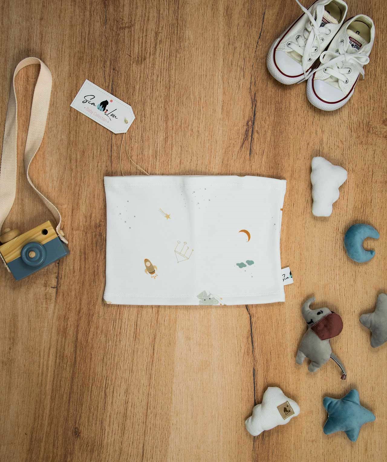 Κασκόλ – Buff σε σχέδιο Planetes , ιδανικό για τις κρύες μέρες του χειμώνα. Είναι footer και πολύ ζεστό με πολύ μαλακό χνουδάκι εσωτερικά για να κρατάει το λαιμό του μωρού σε καλή θερμοκρασία . Όλα τα accesories μας κατασκευάζονται από, φιλικά προς το παιδί και το περιβάλλον, υφάσματα υψηλής ποιότητας, με τις τελευταίες πιστοποιήσεις σε OECO TEX και GOTS.