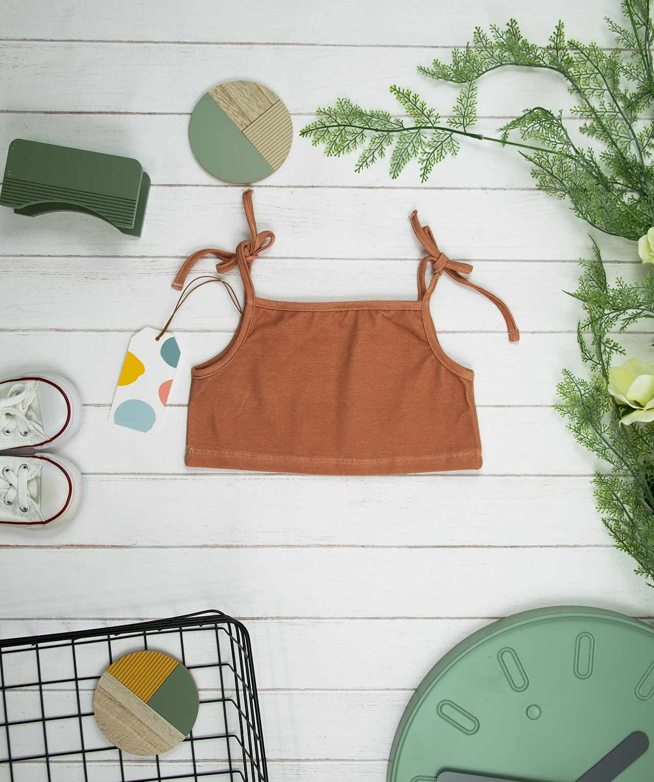 Μπλούζα crop top για κορίτσι σε rosy peach. Ένα άνετο τιραντάκι για τα πιο μοδάτα καλοκαιρινά ντυσίματα. Το μπλουζάκι είναι πολύ άνετο με μαλακό ύφασμα που είναι ιδανικό για το δέρμα του παιδιού. Όλα τα ρούχα μας κατασκευάζονται από, φιλικά προς το παιδί και το περιβάλλον, υφάσματα υψηλής ποιότητας, με τις τελευταίες πιστοποιήσεις σε OECO TEX και GOTS.