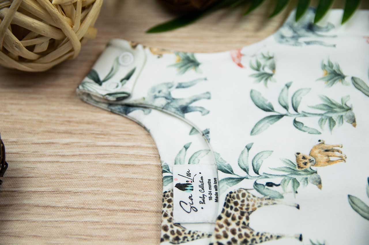 Κορμάκι αμάνικο για κορίτσι με σχέδιο safari animals, κατάλληλο τόσο για βόλτα όσο και για μέσα στο σπίτι. Το κορμάκι έχει τρούκς και από τις δύο μεριές στους ώμους για να μπαίνει και να βγαίνει εύκολά. Επίσης έχει τρουκάκια που ανοίγουν και στο κάτω μέρος στο καβάλο για εύκολη αλλαγή πάνας. Επειδή είναι χειροποίητα και κατόπιν παραγγελίας, η τοποθέτηση του μοτίβου μπορεί να διαφέρει ελαφρώς από αυτό που απεικονίζεται. Δεν υπάρχουν δύο κορμάκια που να είναι ακριβώς ίδια, καθιστώντας το καθένα μοναδικό. Η φωτογραφία μπορεί να παρεκκλίνει ελάχιστα στα χρώματα του τυπώματος. Το κορμάκι αυτό είναι πολύ άνετο με μαλακό ύφασμα που είναι ιδανικό για το δέρμα του παιδιού. Όλα τα ρούχα μας κατασκευάζονται από, φιλικά προς το παιδί και το περιβάλλον, υφάσματα υψηλής ποιότητας, με τις τελευταίες πιστοποιήσεις σε OECO TEX και GOTS.
