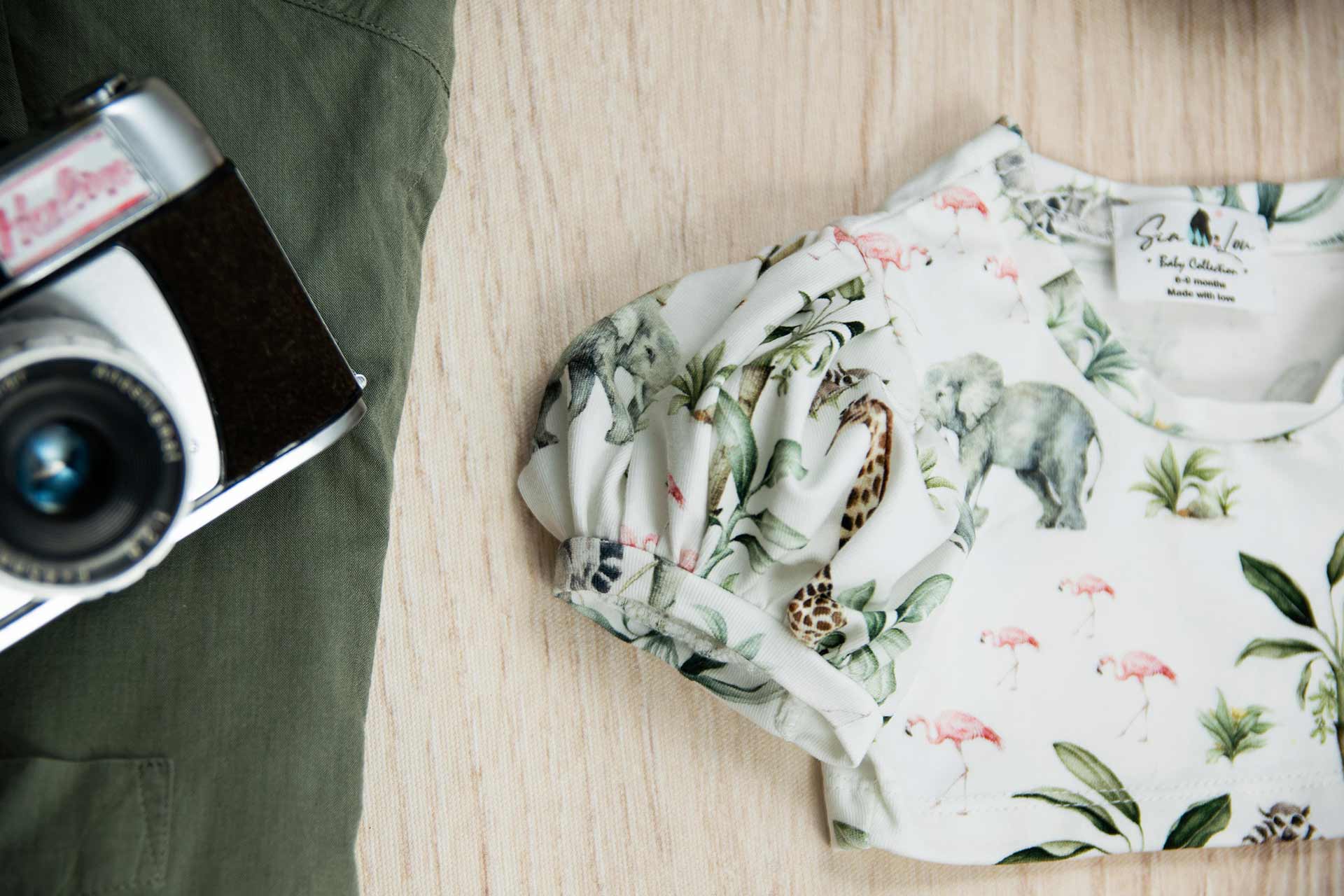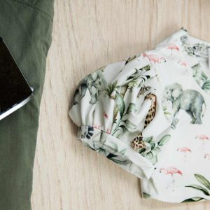 Μπλούζα crop top για κορίτσι με σχέδιο Safari. Το μπλουζάκι έχει χαμόγελο λαιμόκοψη είναι εφαρμοστό στο στήθος και φουσκωτά μανίκια κοντά τα οποία στο τελείωμα είναι σούρα. Ο συνδυασμός αυτός δίνει ένα μοναδικό στιλ στα κορίτσια και πολύ μοντέρνο. Το μπλουζάκι αυτό είναι πολύ άνετο με μαλακό ύφασμα που είναι ιδανικό για το δέρμα του παιδιού. Όλα τα ρούχα μας κατασκευάζονται από, φιλικά προς το παιδί και το περιβάλλον, υφάσματα υψηλής ποιότητας, με τις τελευταίες πιστοποιήσεις σε OECO TEX και GOTS.