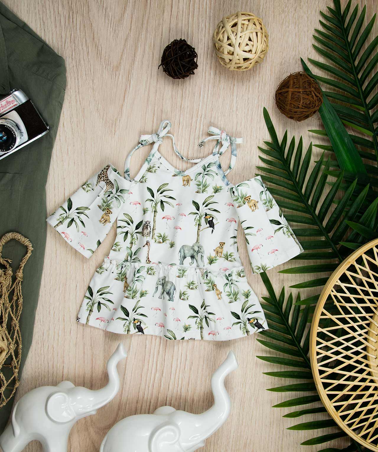 Φορεματάκι με σχέδιο Safari, κατάλληλο τόσο για βόλτα όσο και για μέσα στο σπίτι. Έχει τιράντα η οποία προσαρμόζεται το δέσιμο είτε στον ώμο είτε στη πλάτη και βολάν στο κάτω μέρος του φορέματος. Το στυλ του φορέματος θεωρείται κοντό. Ανάλογα με το ύψος του παιδιού μπορείτε να επιλέξετε το κατάλληλο νούμερο. Παρακάτω έχουμε τον πίνακα μεγεθών που αναγράφει τις διαστάσεις. Επειδή είναι χειροποίητα και κατόπιν παραγγελίας, η τοποθέτηση του μοτίβου μπορεί να διαφέρει ελαφρώς από αυτό που απεικονίζεται. Δεν υπάρχουν δύο φορέματα που να είναι ακριβώς ίδια, καθιστώντας το καθένα μοναδικό. Η φωτογραφία μπορεί να παρεκκλίνει ελάχιστα στα χρώματα του τυπώματος. Το φόρεμα αυτό είναι πολύ άνετο με μαλακό ύφασμα που είναι ιδανικό για το δέρμα του παιδιού. Όλα τα ρούχα μας κατασκευάζονται από, φιλικά προς το παιδί και το περιβάλλον, υφάσματα υψηλής ποιότητας, με τις τελευταίες πιστοποιήσεις σε OECO TEX και GOTS.
