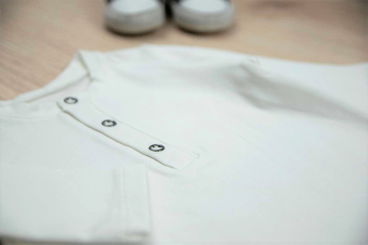Μπλούζα για αγόρι σε λευκό χρώμα. Το μπλουζάκι έχει πατιλέτα με τρουκς και είναι κλασική γραμμή. Είναι πολύ άνετο με μαλακό ύφασμα που είναι ιδανικό για το δέρμα του παιδιού. Όλα τα ρούχα μας κατασκευάζονται από, φιλικά προς το παιδί και το περιβάλλον, υφάσματα υψηλής ποιότητας, με τις τελευταίες πιστοποιήσεις σε OECO TEX και GOTS.